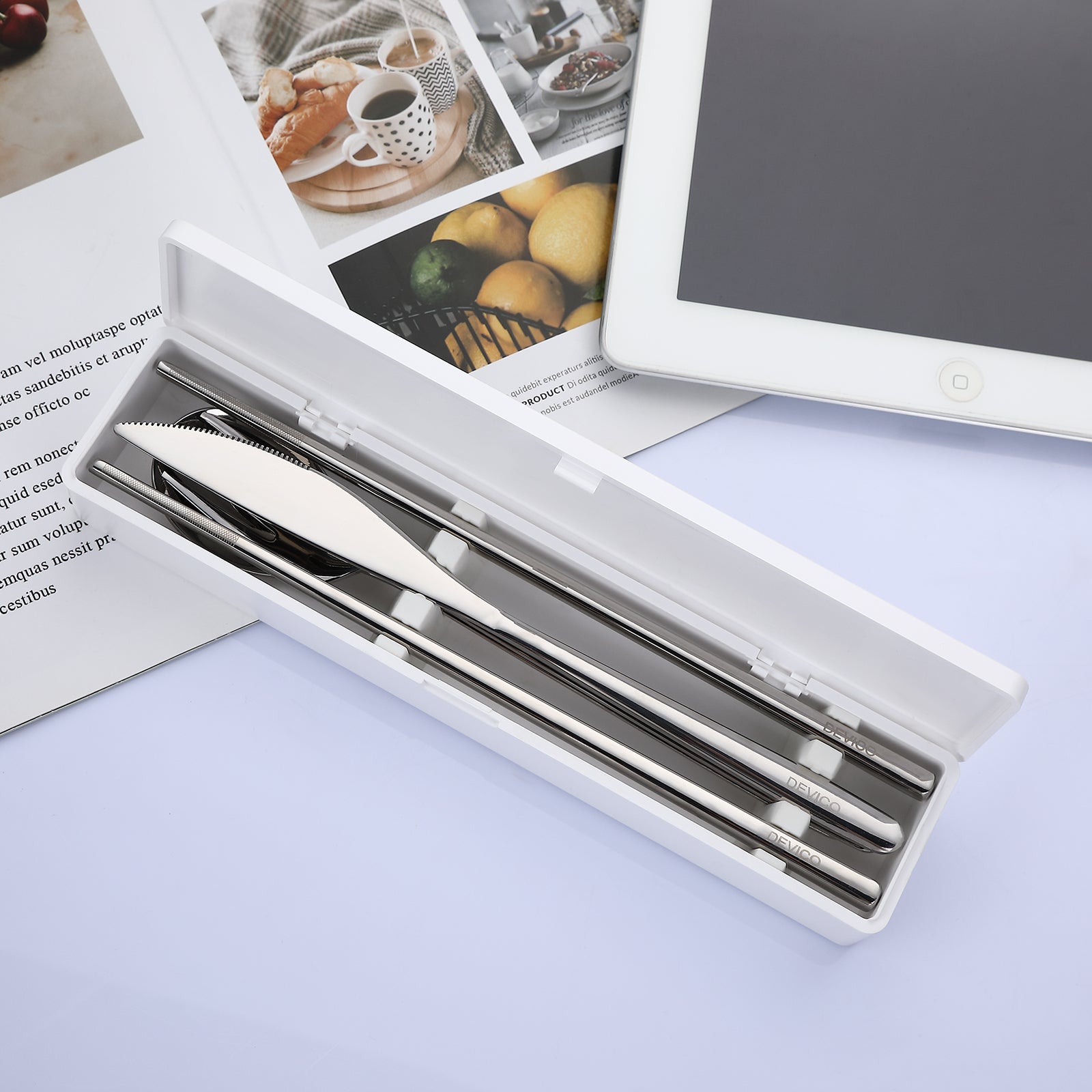 DEVICO Travel Utensils, 18/8 Stainless Steel 4pcs Cutlery Set Portable Camp Reusable...